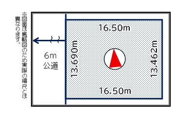 | その他の法令上の制限 | 北側斜線高度地区、戸建住環境保全地区、宅地造成工事規制区域、景観計画区域、居住系市街地、建築基準法第22条 | 接道状況 | 西側6m幅の公道に間口13.690m接する |
