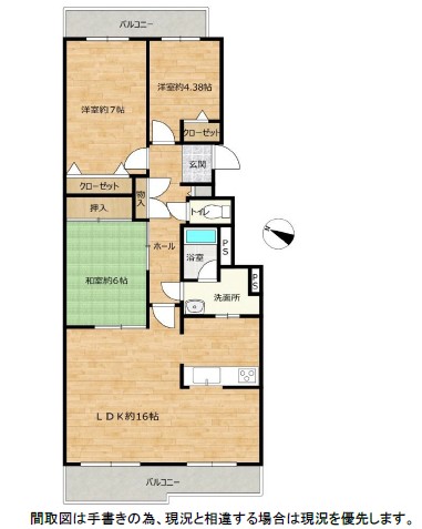 各室収納付き・二面バルコニー!3LDKの間取りです!
